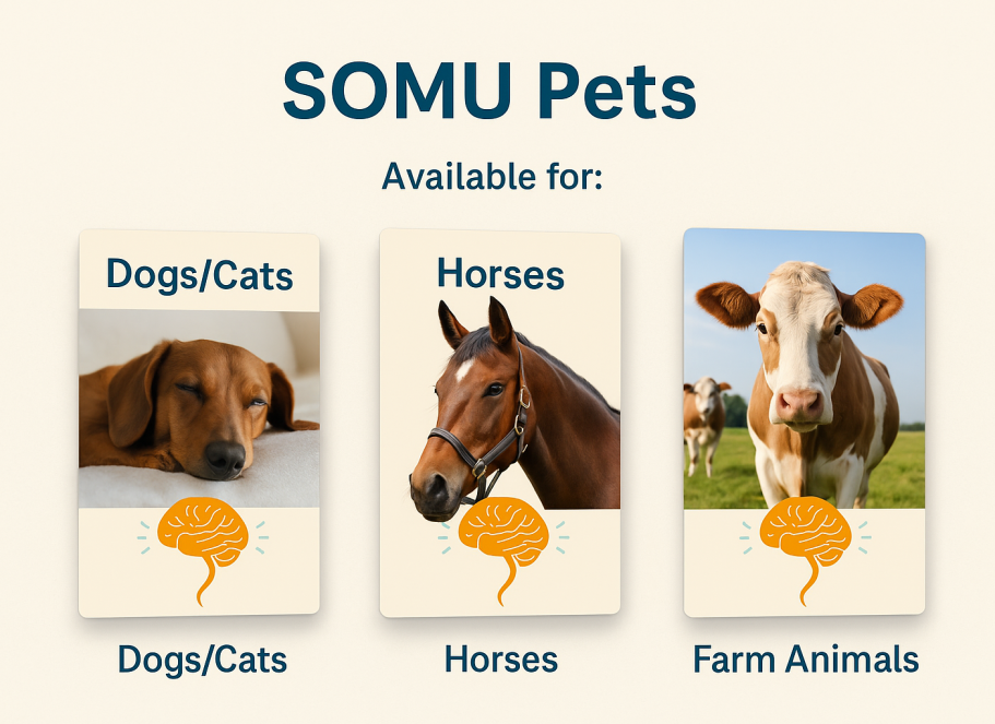 SOMU works where humans and animals function the same: with carefully designed frequency patterns that activate the vagus nerve and train the nervous system to return to calm more easily.